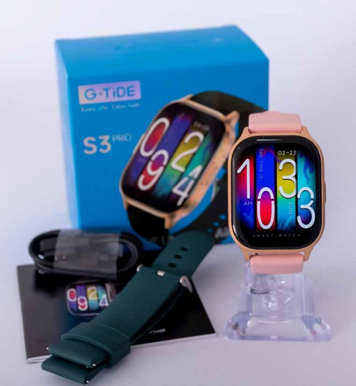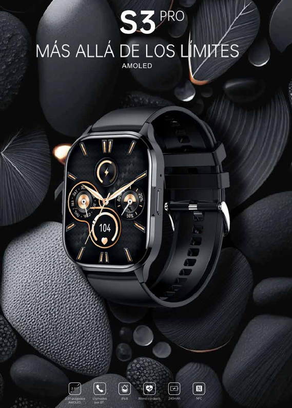 Monitor Inteligente de Salud- G-TiDE S3 PRO puede proporcionar medición de saturación de oxígeno en sangre, monitor de frecuencia cardíaca, rastreador de sueño y seguimiento del ciclo fisiológico femenino, logrando la gestión de la salud desde su muñeca. Puede ayudarle a comprender mejor su estado y desarrollar un estilo de vida más saludable y activo. 10+ Modos Deportivos & IP68 Waterproof- Este reloj de fitness cuenta con 10+ modos deportivos para registrar los datos de actividad de todo el día, incluyendo sus pasos, distancia, calorías. Notificaciones inteligentes y compatibilidad- El reloj inteligente vibrará para avisarle si su teléfono recibe una llamada telefónica, texto SMS y mensajes SNS (como WhatsApp, Instagram, Facebook, Messenger, etc), no se perderá mensajes importantes.